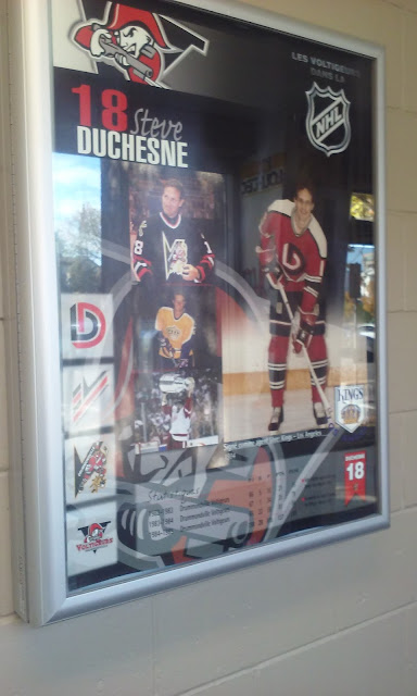 Il y a plusieurs cadres autour de la patinoire rendant hommage aux anciens Voltigeurs qui ont évolué, ne serait-ce que pour un match, dans la LNH. Une belle façon de démontrer une culture de gagnant et de faire connaître les anciens aux nouveaux partisans des Voltigeurs. C'est aussi quelque chose que j'aimerais voir à Victoriaville ...