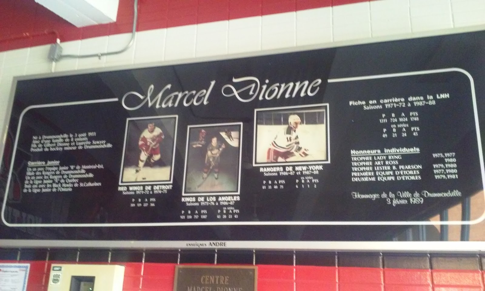 Ouvert en 1963, le "Centre Civique" de Drummondville fut rebaptisé "Centre Marcel-Dionne" le 4 juillet 1980, en l'honneur de l'enfant chéri de Drummondville, né en 1951.