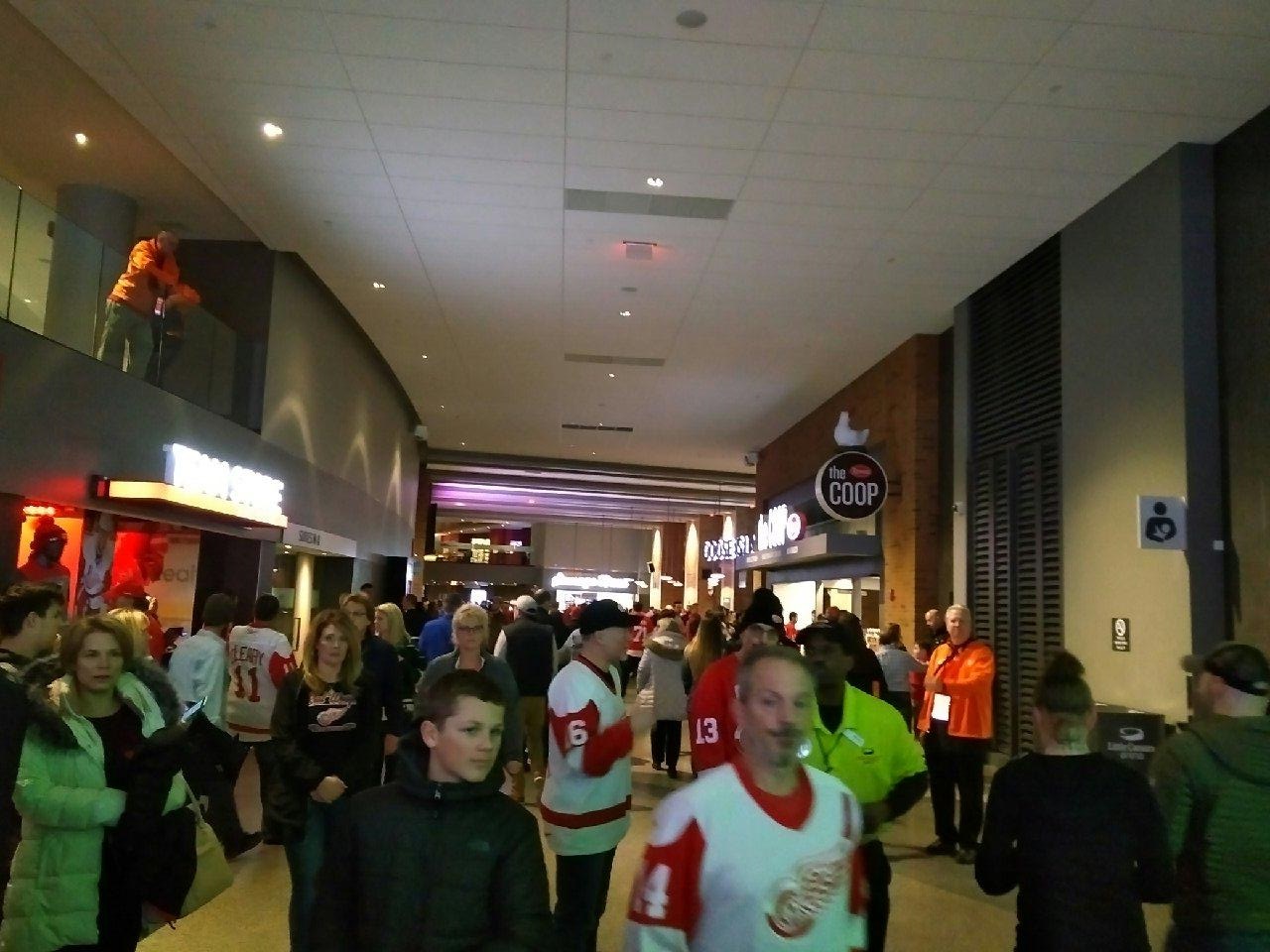 Au niveau sportif, le Little Caesars Arena en est à sa deuxième saison, après avoir remplacé le Joe Louis Arena. Il a été construit au centre-ville, pratiquement côte à côte du Comerica Park (le stade des Tigers) et du Ford Field (le stade des Lions), deux enceintes un peu plus vieilles, mais pas tant. De l’autre côté de la rue, on voit des palissades qui annoncent la suite du projet de redéveloppement immobilier de plus de 2 milliards $ dont fait partie le ?LCA". Considérant que toutes ces constructions sont dans le même secteur, on imagine toute la surface qui a été dégagée en plein centre-ville, qui en avait grandement besoin.