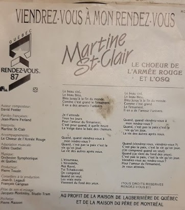 Il faut dire que la production a un certain panache. La chanson est interprétée par Martine St-Clair, accompagnée de l'OSQ et du Choeur de l'Armée rouge. Le texte fait référence aux deux pays.