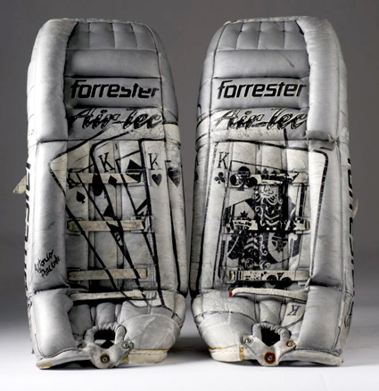 Lors de sa deuxième saison complète avec les Kings de Los Angeles, c'est Robb Stauber qui fut le premier à arborer des jambières "décorées". Ça ne l'a toutefois pas rendu meilleur, ne remportant que 4 des 22 matchs auxquels il participa. Par contre, il "lookait" bien en étant mauvais, car ses jambières avec des rois de cartes à jouer (Kings ;) ) se mariaient parfaitement avec son masque.