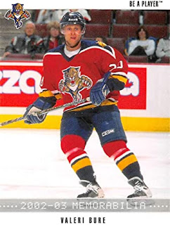 Mais je crois que j'étais surtout intéressé par Valeri Bure, étant d'abord curieux du fait qu'il était le frère moins connu de Pavel. Comme j'avais précédemment arrêté de suivre le CH en 1995 j'ai comme quelque peu manqué son arrivée dans la LNH. Par la suite, je me suis longtemps intéressé à sa carrière un peu en demie-teinte quoique pour un ''frère moins bon que l'autre'' il était quand même un très bon joueur. Je le considère d'ailleurs comme un des ''meilleurs frères moins bons que son frère'. Un peu comme Pete Mahovlich, Dennis Hull ou Sylvain Turgeon...