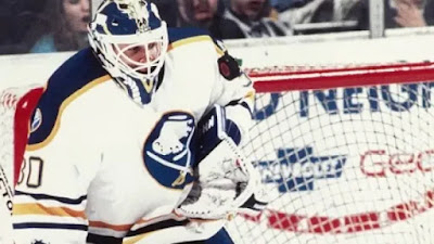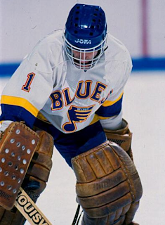 Mike Liut portait un masque iconique et terrifiant à la fois (voir texte du 8 janvier 2015). Toutefois en fin de première période le 27 octobre 1982, le puissant lancer frappé d'Al MacInnis lui fracassa le nez et, par le fait même, le-dit masque. À son retour au jeu le match suivant (!), Liut portait un combo casque et grille Jofa. Plus tard dans sa carrière, il fit la transition vers le masque moderne, fabriqué par Michel Lefebvre (de l'équipement du même nom).