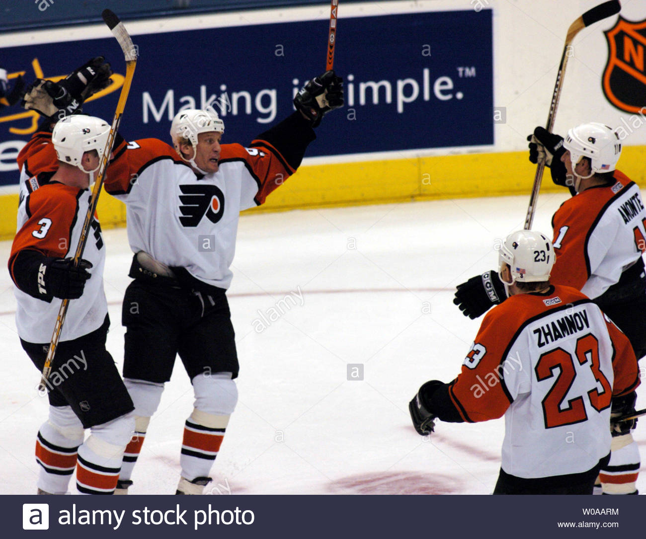 Zhamnov se retrouva ainsi en terrain familier à Philadelphie alors que l'équipe semblait apprécier d'avoir des ex-Blackhawks et ex-Coyotes dans ses rangs avec la présence de Roenick (signé comme joueur autonome en 2001-02) et Amonte. Le séjour de ce dernier à Phoenix fut d'ailleurs un court fiasco et l'équipe l'envoya rapidement à Philadelphie.