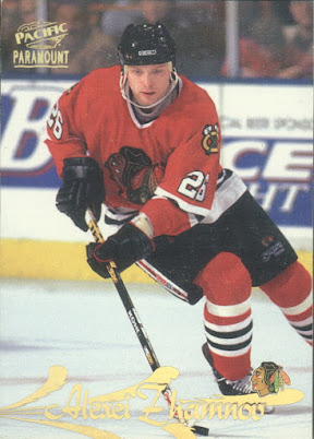 Alexei Yuryevich Zhamnov est né le 1er octobre à Moscou. Solide centre de 6'1", il fit partie de cette génération de nouveaux joueurs russes qui envahirent la scène de la LNH au début des années 90. On le considérait même comme le prochain Sergei Fedorov lors de ses années de formation avec le Dynamo de Moscou où il fit la pluie et le beau temps en compagnie d'Alex Kovalev et d'un autre membre de cette série, Alexander Semak. J'imagine qu'ils devaient surnommer cette ligne la "Alex Line"...