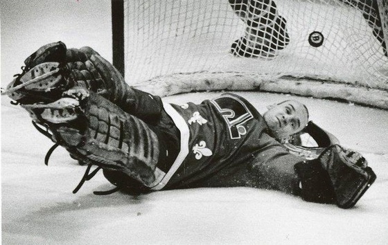 Ça fait un bail que je veux faire un billet sur , ex-gardien de plusieurs équipes de la ville de Québec : Les Remparts (en bleu, gris et rouge) en 1984-85, les Nordiques de 1987 à 1990 et les As de la Ligue de Hockey Semi-Pro, maintenant la LNAH, en 2002-03. Mais j'ai eu beau fouiller tous les recoins d'Internet et de mes anciennes revues ou articles de journaux, je ne trouve rien de bien frappant à son sujet.
