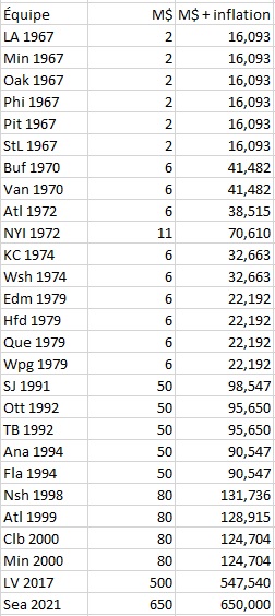 -Le montant versé par les ex-équipes de l’AMH en 1979 est celui payé à la LNH, même si elles avaient aussi dû payer des frais d’expansion (de beaucoup inférieurs) pour se joindre au circuit maudit.