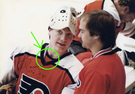 Il y a aussi les pièces d'équipements chanceuse, comme un survêtement. L'illustre Pelle Lindbergh avait un t-shirt orange "chanceux" qui faisait office de "combine". Pelle portait ce chandail orange à chaque match. Mais plus particulier encore, il n'a jamais lavé ce chandail. Jamais comme dans jamais ! Content de ne pas avoir été son voisin de casier, ça devait sentir la charogne.