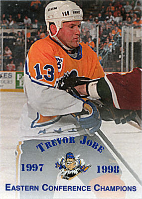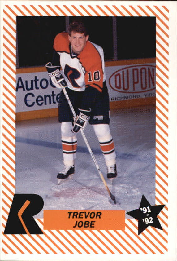 Trevor Jobe est né le 14 mai 1967 à Brandon au Manitoba. Grand centre costaud de 6'2" et 230 livres, c'est très tôt lors de son stage junior qu'il débuta sa vie de nomade alors qu'il joua pour pas moins de 6 équipes junior en 4 saisons. Il débuta d'abord en 1984-85 avec les Wranglers de Calgary (1). Sa saison 1985-86 fut ensuite mouvementée alors qu'il joua seulement 7 matchs pour les Wranglers et se fit échanger deux fois durant la saison. Il joua donc 7 autres matchs avec les Broncos de Lethbridge (2), 11 avec les Chiefs de Spokane (3) et il fut recalé 11 matchs dans le junior A avec les Grizzlys de Olds (4) en Alberta.