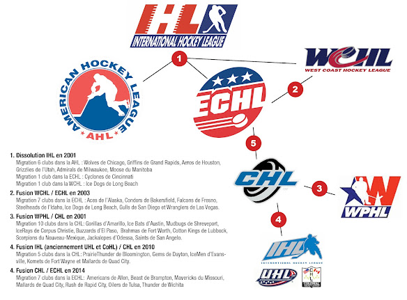 Bref, ce ne fut toutefois pas les derniers changements à survenir dans les ligues mineures. En même temps que la IHL, la WPHL (Western Professionnal Hockey League) discutée plus haut fut à son tour absorbée, cette fois par la Central Hockey League. Cette dernière s'en sortit assez bien durant cette période. Elle était constituée de clubs provenant de sa propre création en 1992 ainsi que ces clubs absorbés de la WPHL et de l'ancienne Colonial Hockey League (CoHL) discutée plus haut. Cette CoHL avait entre-temps changé de nom deux fois soit sous le nom de la United Hockey League (1997) et ensuite (pour bien nous mélanger) sous une deuxième incarnation de la International Hockey League (2007) jusqu'à son absorption par la CHL en 2010.