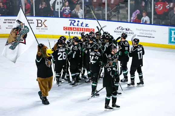 Lors de la fin de la IHL en 2001, les Grizzlies firent partie des 6 clubs qui survécurent en passant à la AHL. L'équipe y joua ensuite 4 saisons mais des difficultés économiques forcèrent Elmore et Tuttle à s'en départir après la saison 2004-05, principalement dû aux coûts de transport, Salt Lake City étant alors assez éloignée des autres clubs de la AHL. Ils vendirent donc la franchise à un groupe qui les déménagèrent à Cleveland sous le nom des Monsters.