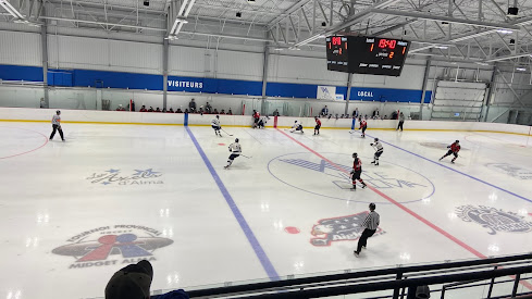 Je suis resté après le match avec un de mes chums pour le match pré-saison de son garçon au niveau MAHG (dont il m'en excusera d'avoir oublié la catégorie précise). Je ne suis resté seulement qu'une période de ce match entre les Aiglons et les Patriotes mais cela m'a permis de cocher un niveau supplémentaire à ma liste malgré que je n'ai pas l'intention de tout faire les classes et sous-catégories du hockey mineur... déjà que je m'y perds trop facilement depuis qu'ils ont retiré le nom des catégories de mon enfance (atome, pee-wee, bantam etc...) pour des M15 M12 M13 etc...